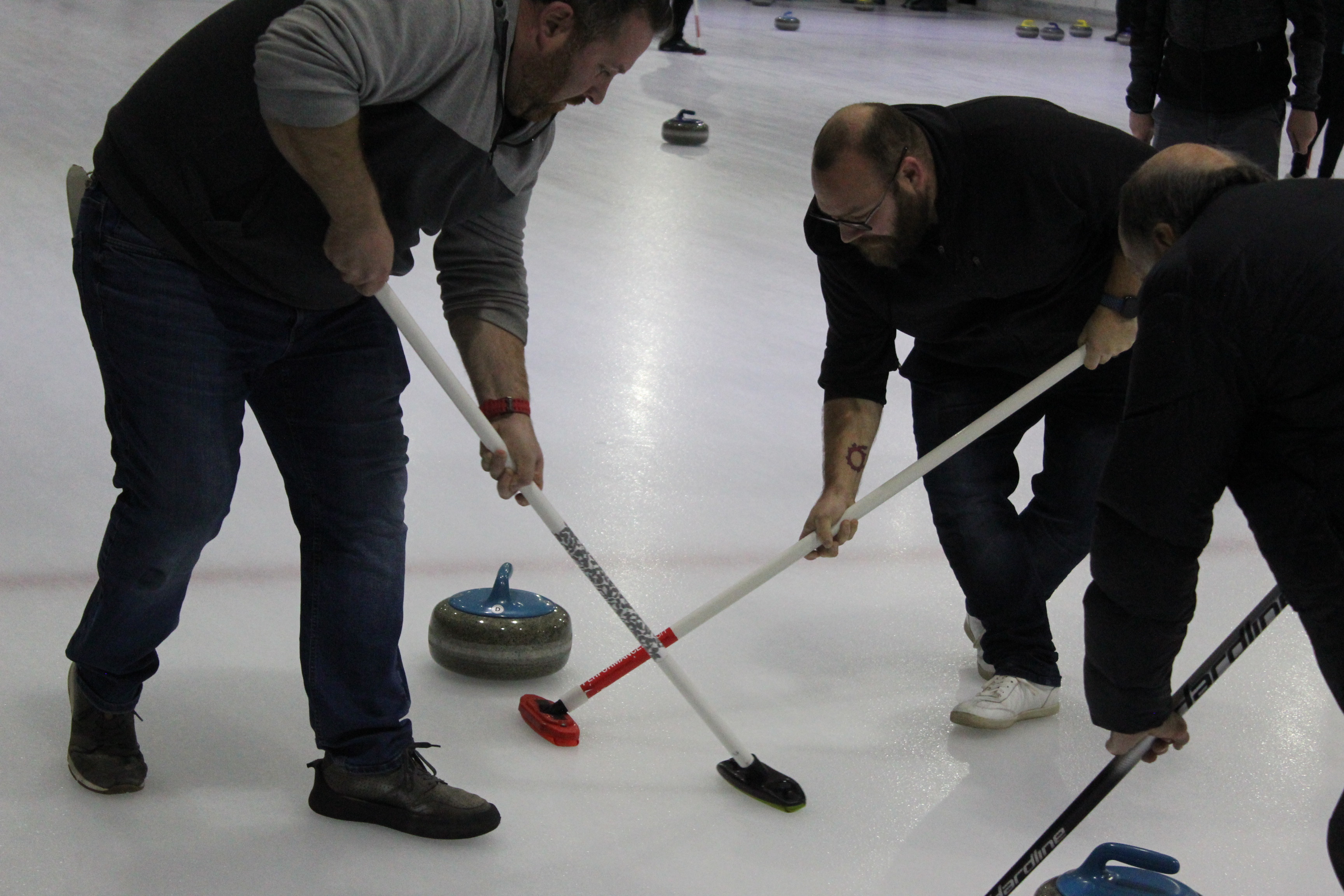 Members of Dumbarton Curling Club during a club night in November 2023.